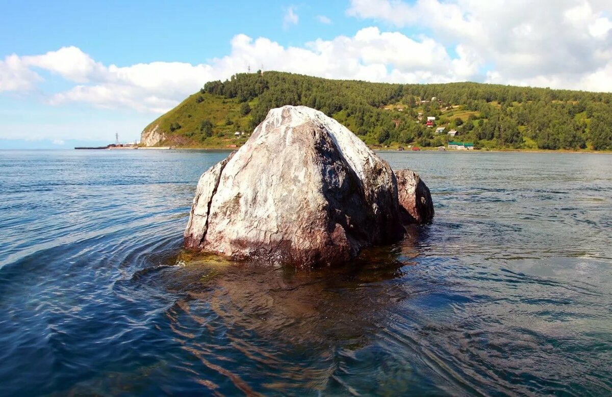На самом деле это подводная скала, которая на метр возвышается над водной гладью. До строительства Иркутской ГЭС уровень воды в Байкале был ниже, и Шаман-камень поднимался над водой более внушительно.